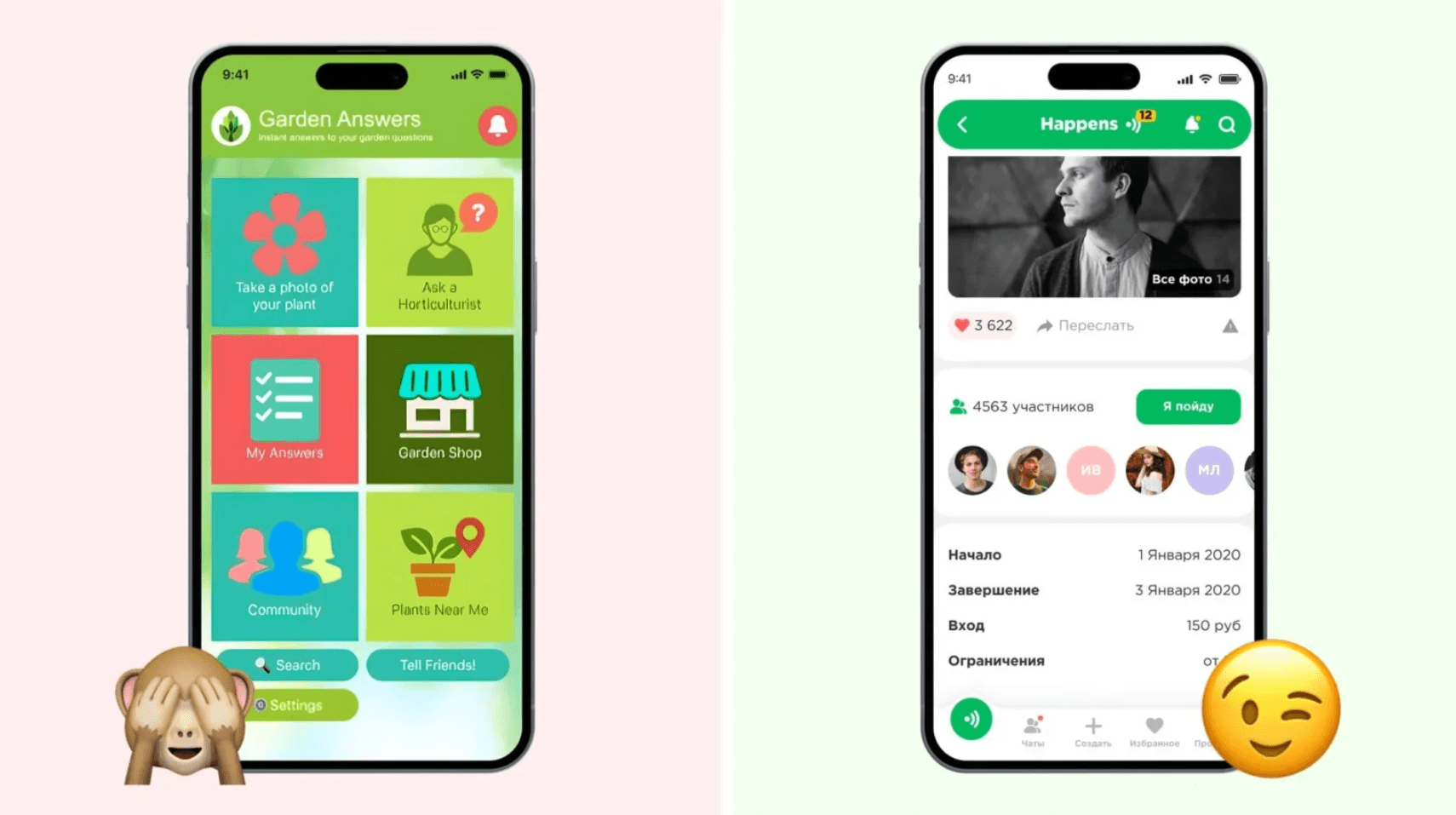 Не стоит копировать визуал конкурентов. Да, их приложение может пользоваться спросом, но ценности в заимствованной версии не будет — пользователи только пошутят в духе «только не списывай точь-в-точь». Продукт не выделится, не запомнится.