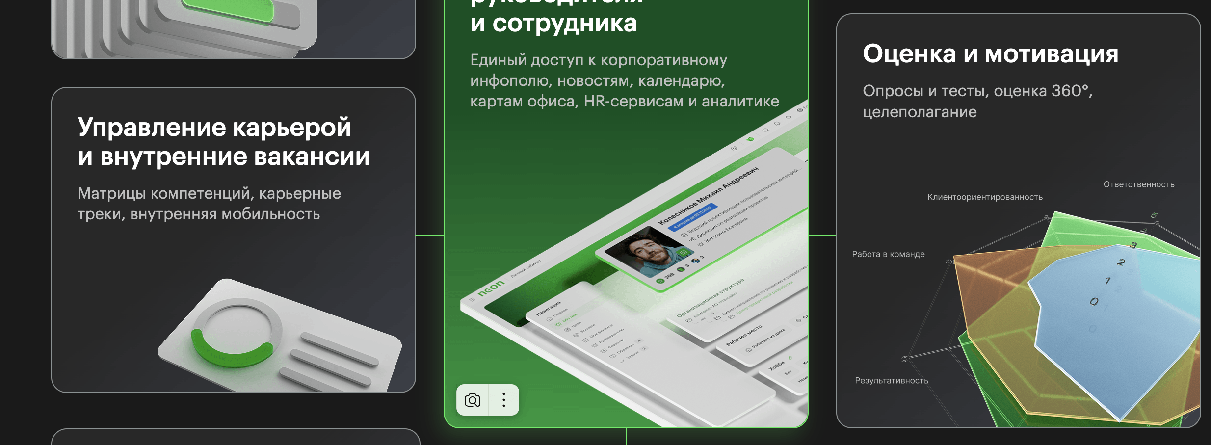 Neon HRM предлагает использовать ИИ-оценку работы сотрудника по различным критериям, а при сигналах о риске увольнения HR-платформа предлагает решения по удержанию сотрудника через нематериальную мотивацию и повышение вовлеченности в рабочие проекты.