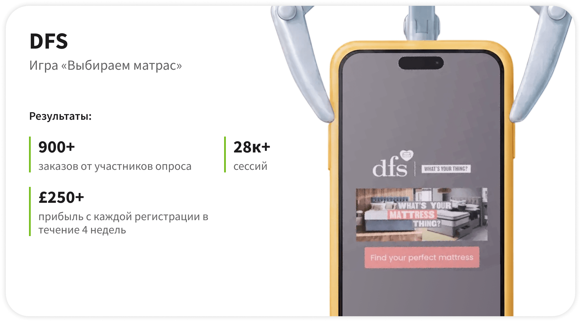 Игра стала инструментом для определения предпочтений по характеристикам матраса (размер, комфорт, наличие специальных функций) с последующей персонализированной рекомендацией.