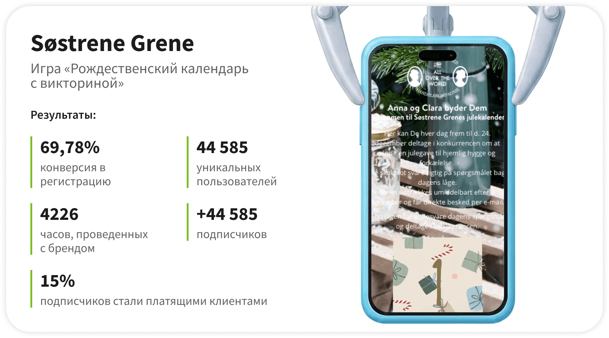 Ежедневная викторина, построенная на легенде и ценностях бренда, позволяла пользователям в игровом формате узнавать историю Søstrene Grene.