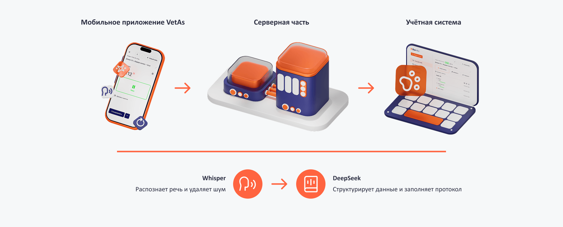 Чтобы решить эту системную проблему, мы разработали первый в России ИИ-ассистент, который помогает ветеринарам оформлять протоколы инструментальных исследований голосом, сокращая время на рутину и повышая точность данных. Проект стал результатом глубокого отраслевого анализа и объединил технологическую экспертизу команды «Вебпрактик» и практический опыт индустриального партнёра, сети ветеринарных клиник «ВотВЕТе».