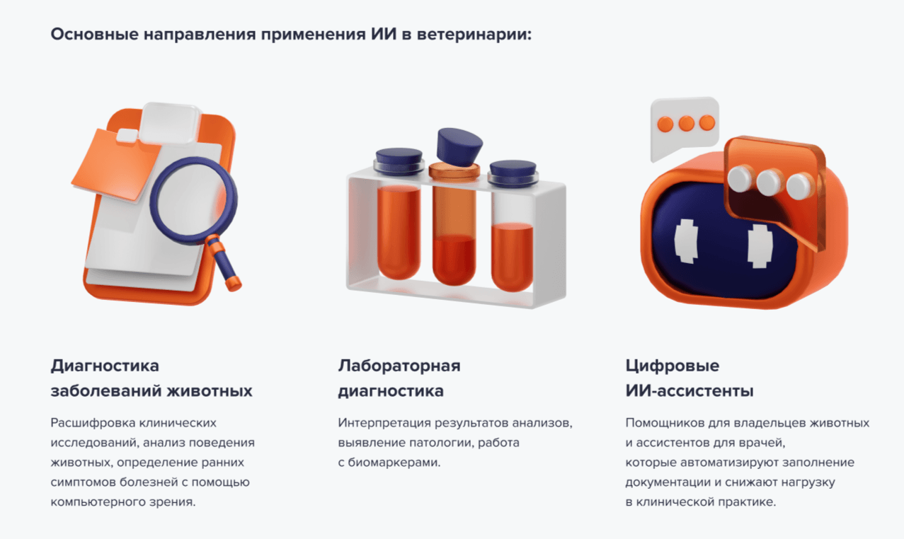 В мировой практике искусственный интеллект используется в ветеринарии не только для диагностики, но и для оптимизации клинических процессов и взаимодействия с владельцами животных.
