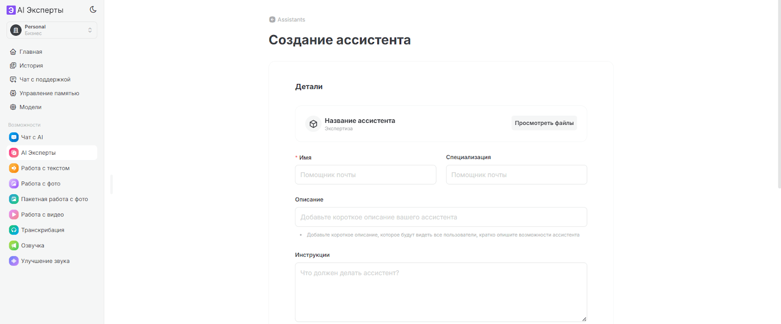 Помимо создания ассистентов, доступны готовые инструменты для транскрибации аудио, работы с фото и видео, озвучки текста и улучшения звука. Все это работает без единой строки кода.