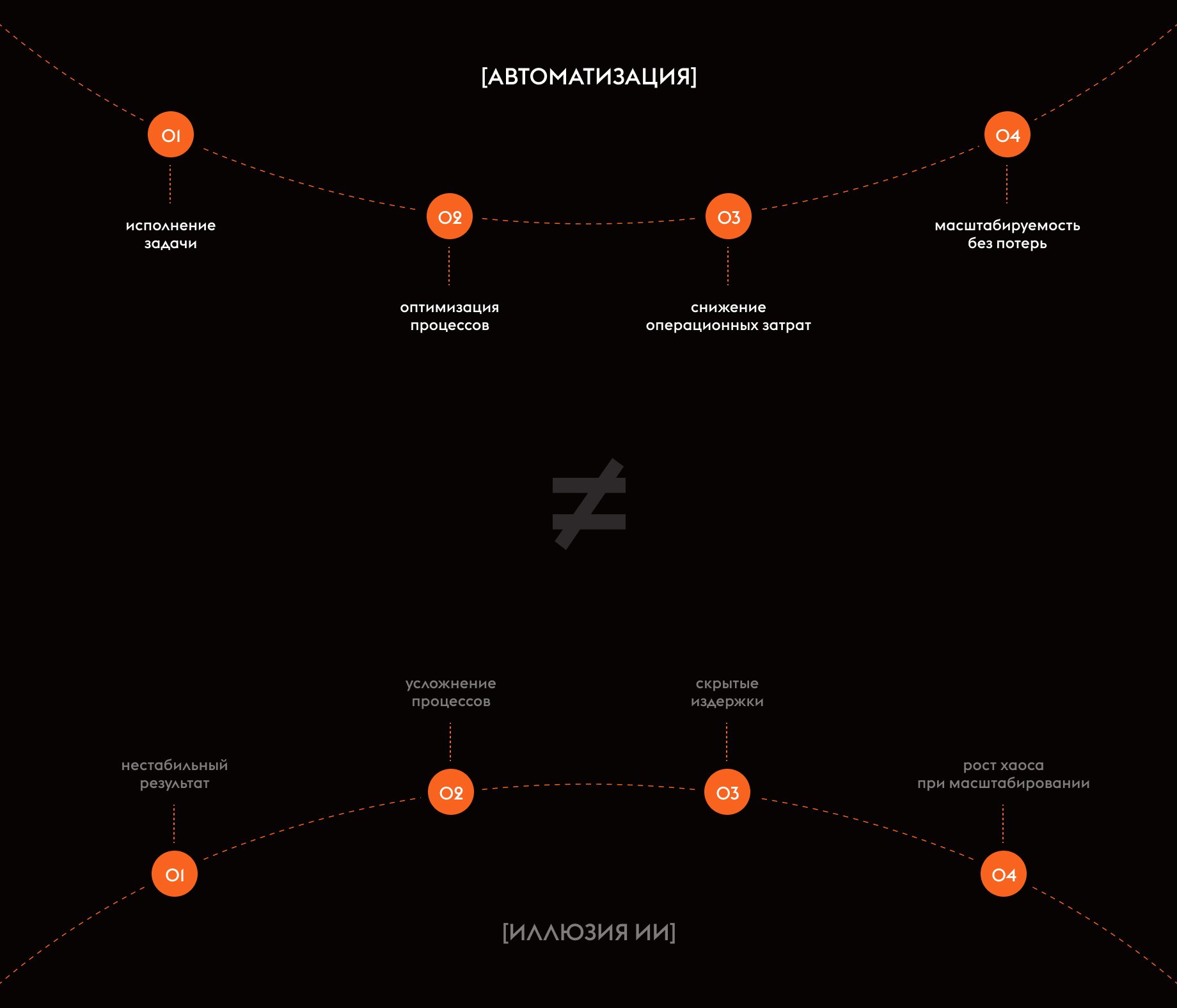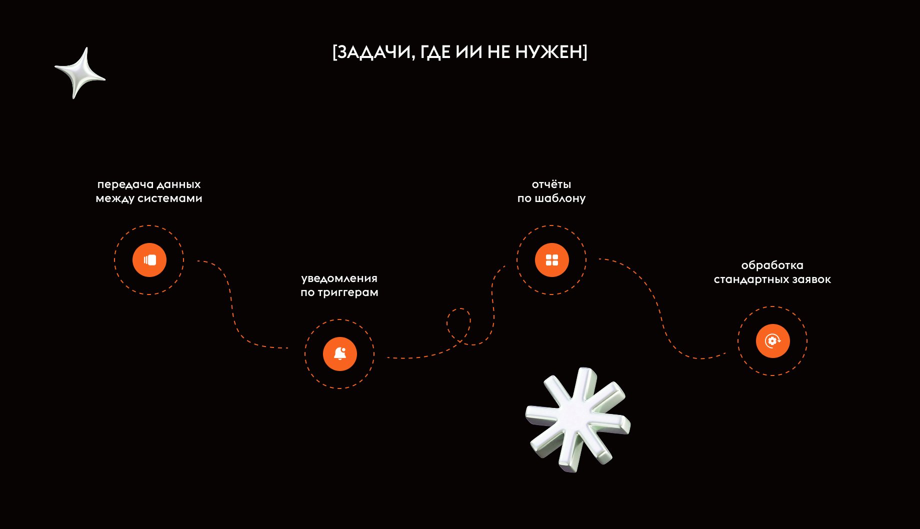 При этом за этим запросом не всегда стоит конкретная задача. В процессе обсуждения выясняется, что речь идёт о типовых вещах: передаче данных, обработке заявок, настройке уведомлений и базовой автоматизации. На практике в значительной части таких случаев вместо внедрения ИИ оказывается достаточно обычной автоматизации: интеграций между системами и корректно выстроенных процессов. В таких сценариях задача решается без нейросети: быстрее, дешевле и предсказуемее по результату.