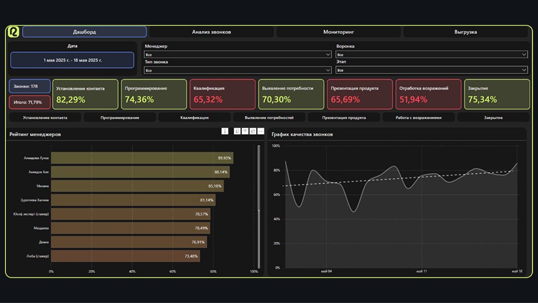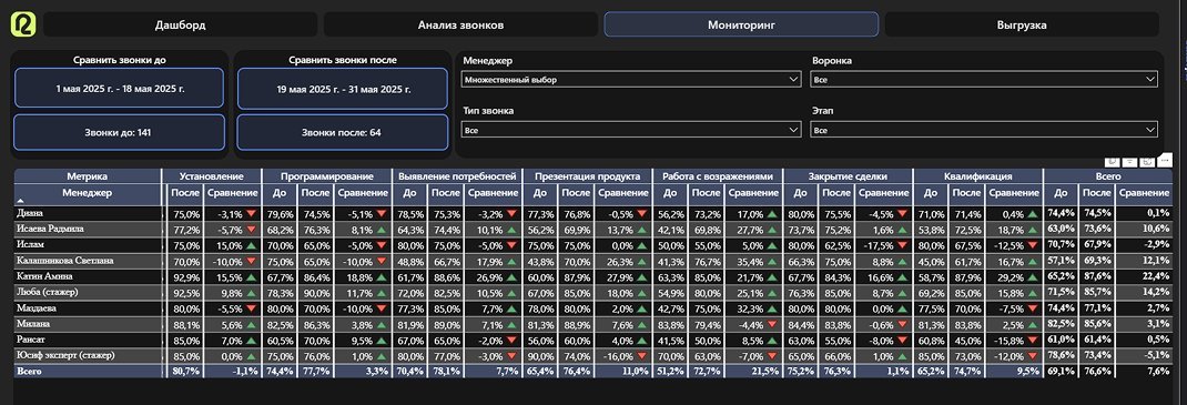 Больше не нужно слушать по 100 звонков или устраивать «разборы полётов». Все данные уже собраны и разложены по полочкам. Где теряем клиентов. Кто. На каком этапе. Почему. Всё видно сразу. Экономия времени? Да. Экономия нервов? Ещё какая.