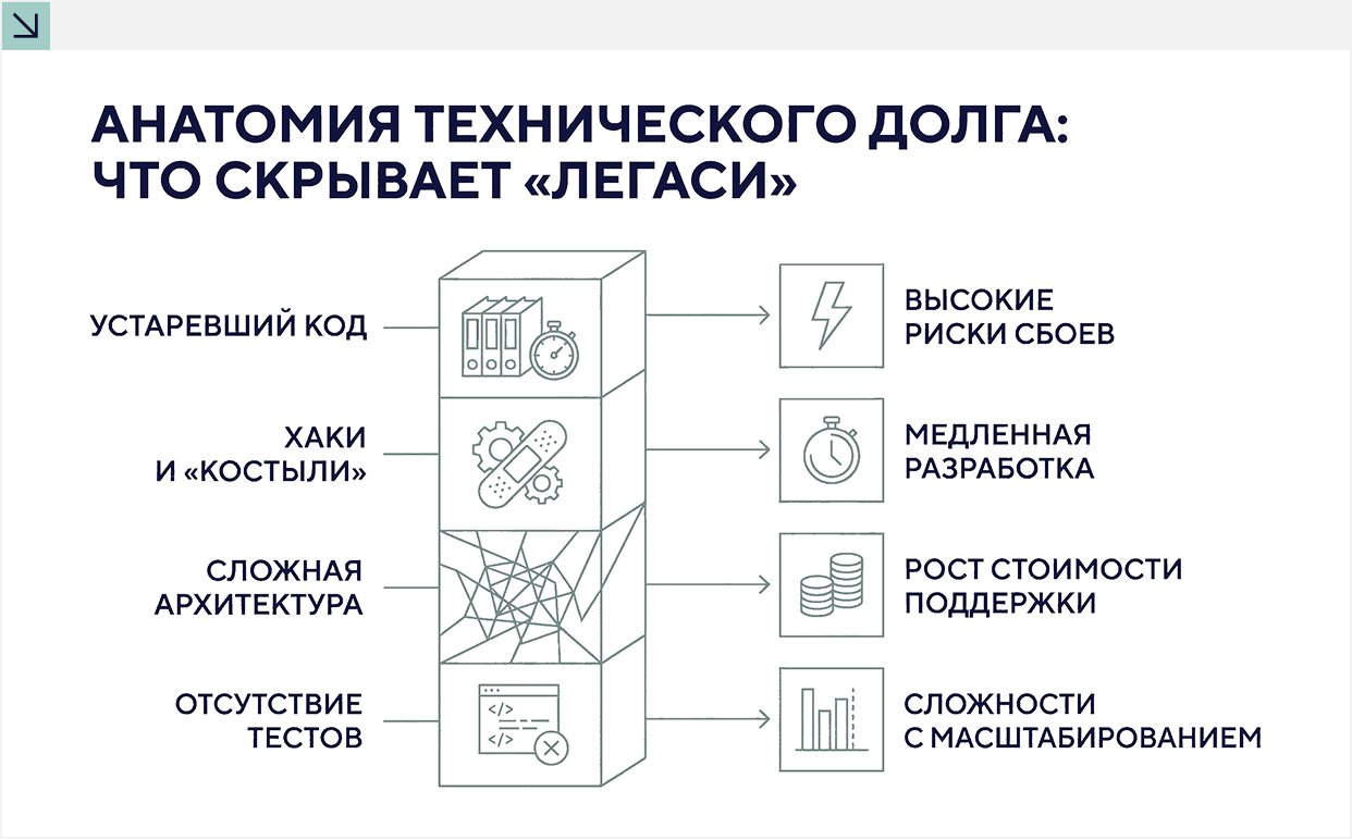 Когда проект передается на развитие новой In-house команде или агентству, вместе с ним передается и весь накопленный годами «легаси» (legacy) — устаревший код и нестандартные архитектурные решения прошлых разработчиков.