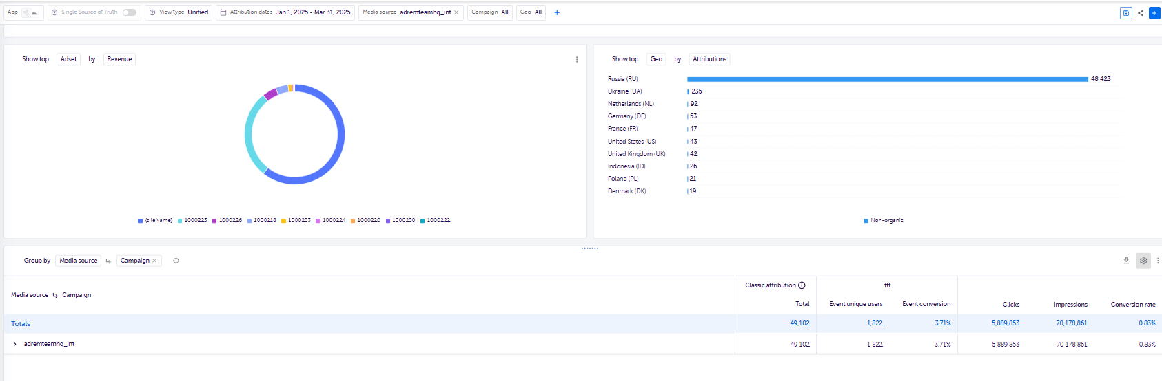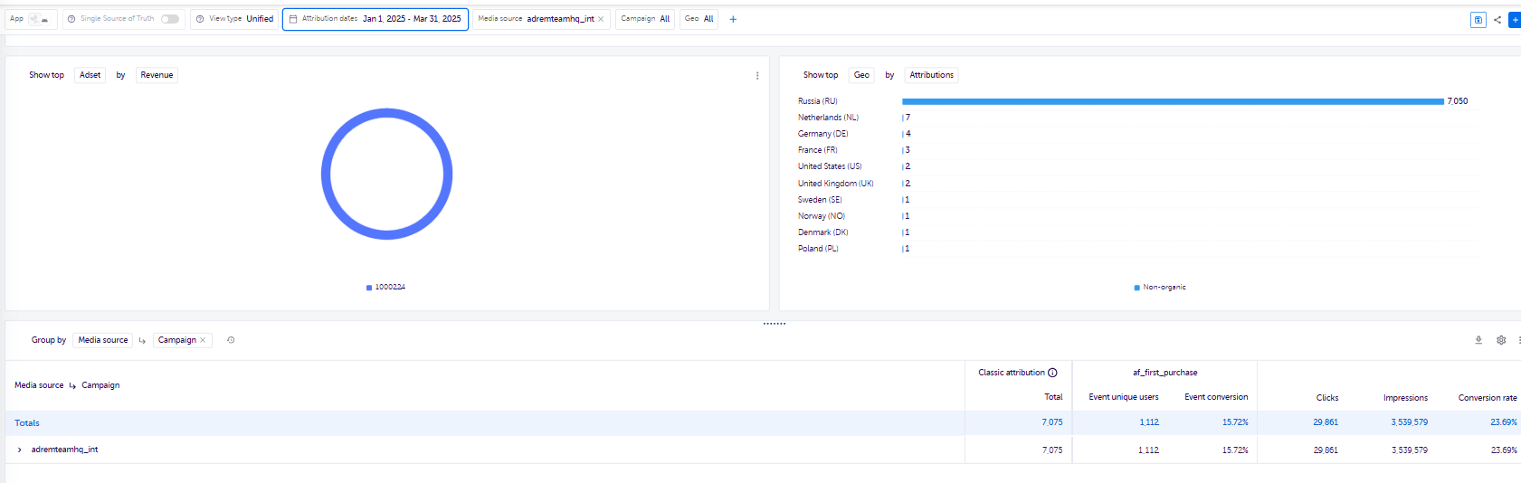 Adrem интегрирован с ключевыми мобильными трекерами: Appsflyer, Adjust, MyTracker. По первым кейсам видно, что трафик демонстрирует высокие показатели: конверсии выше рыночных, минимальный уровень фрода, стабильный LTV. Аудитория — зрелые пользователи с реальной покупательной способностью.