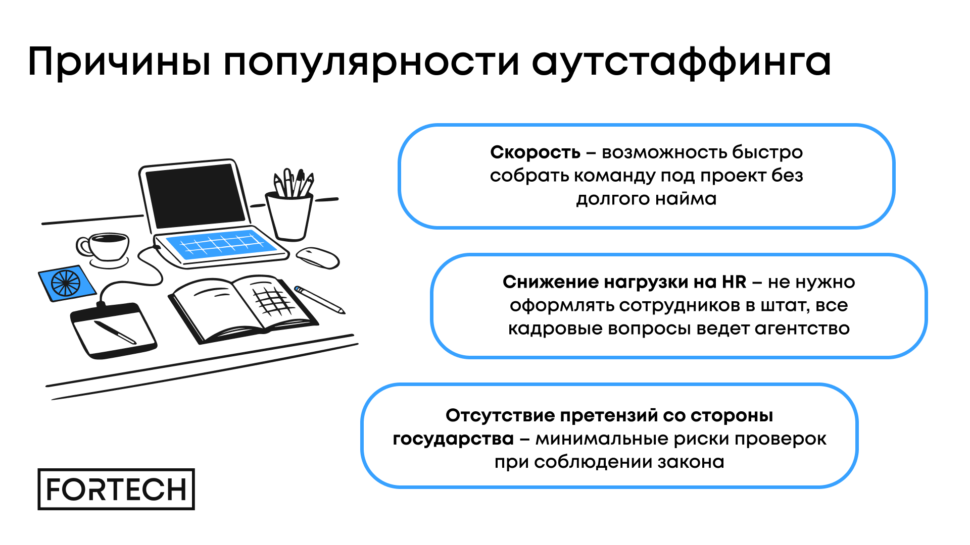 Несмотря на то, что работа в формате аутсатфа имеет ряд ограничений, эта услуга продолжает оставаться актуальной для IT-компаний. На это есть ряд объективных причин, а именно: