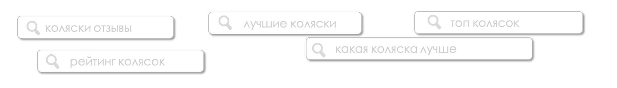 Для определения предпочтений пользователей в исследуемом сегменте был проведен анализ контента поисковой выдачи Яндекс и Google (мобильная и Desktop-версии, ТОП-10). Часто встречающиеся ключевые запросы следующие: «коляски отзывы», «какие коляски», «коляска для ребенка», «лучшие коляски», «прогулочная коляска отзывы», «рейтинг колясок, топ колясок», «лучшие прогулочные коляски», «какая коляска лучше», «детские коляски отзывы».