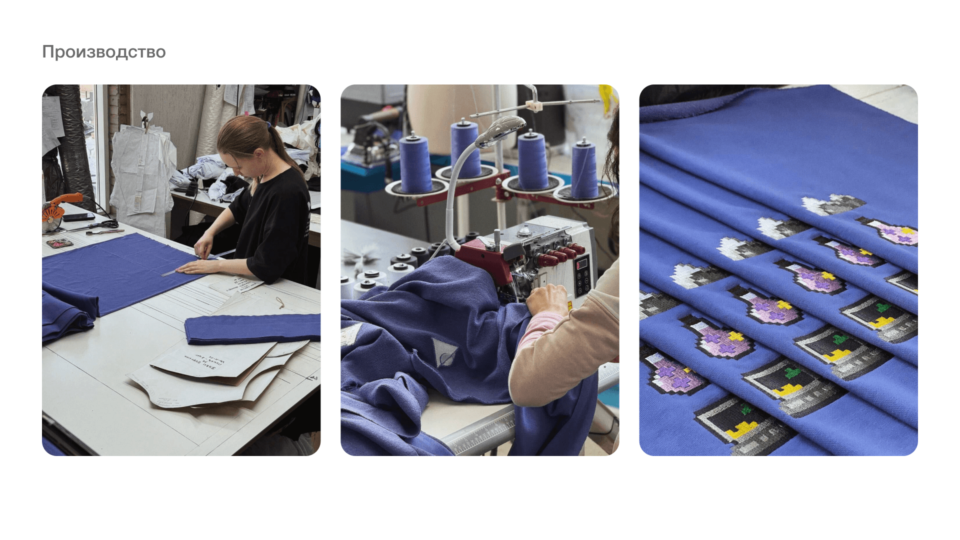 Не вышло только второй цвет худи сделать, потому что на производстве нашли брак на половине рулона выбранной нами ткани. Но это не страшно.