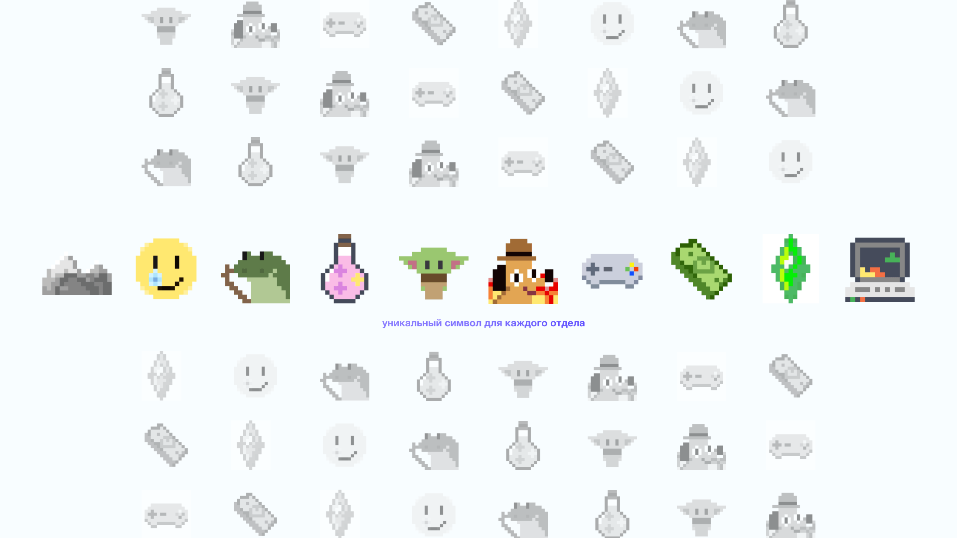 А ещё у меня уже возникла идея, что можно сделать уникальные изображения для каждого отдела. И мы бы получили много быстросчитываемых образов, которые можно аккуратно вышить.