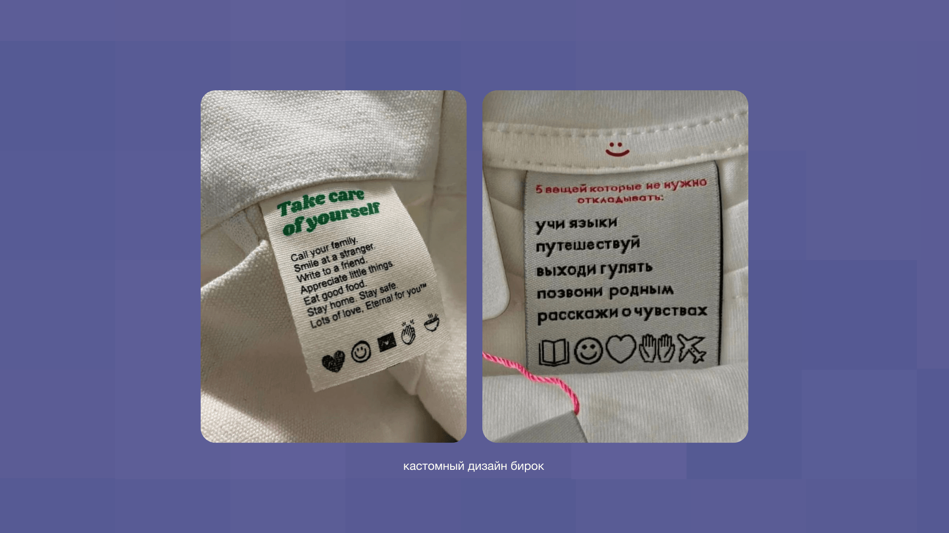 На одном из производств нам рассказали, что они брендируют не только ярлыки, размерники и составники, но и делают инструкции к одежде. Мы впечатлились и решили, что к нашей одежде тоже сделаем инструкцию, чтобы не только рассказать про правильный уход за изделием, но и поделиться концепцией.