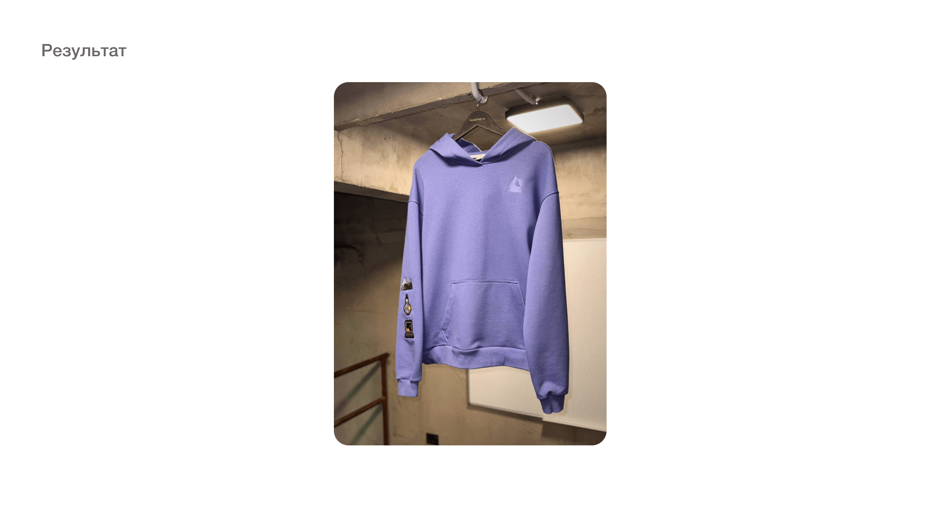 Несмотря на довольно сжатые сроки и производственные вызовы, у нас получилось создать 50 худи в нетипичном для компании — фиолетовом цвете. Ещё и с тремя вышивками, кастомизированными под каждый отдел.