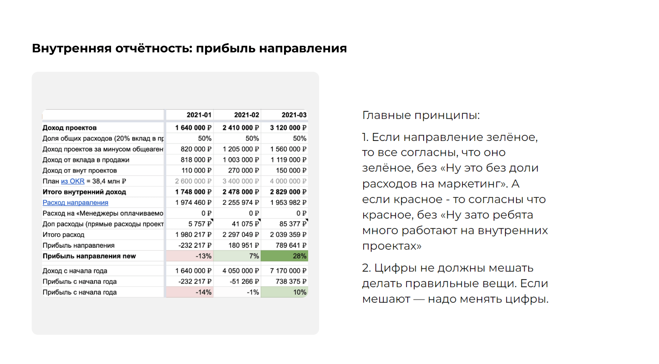 В этот же период мы ушли от магии к управляемым процессам. Так появилась понятная и подробная отчётность, которая помогает понять не только какая услуга приносит больше денег, но и сколько денег приносит каждый сотрудник.