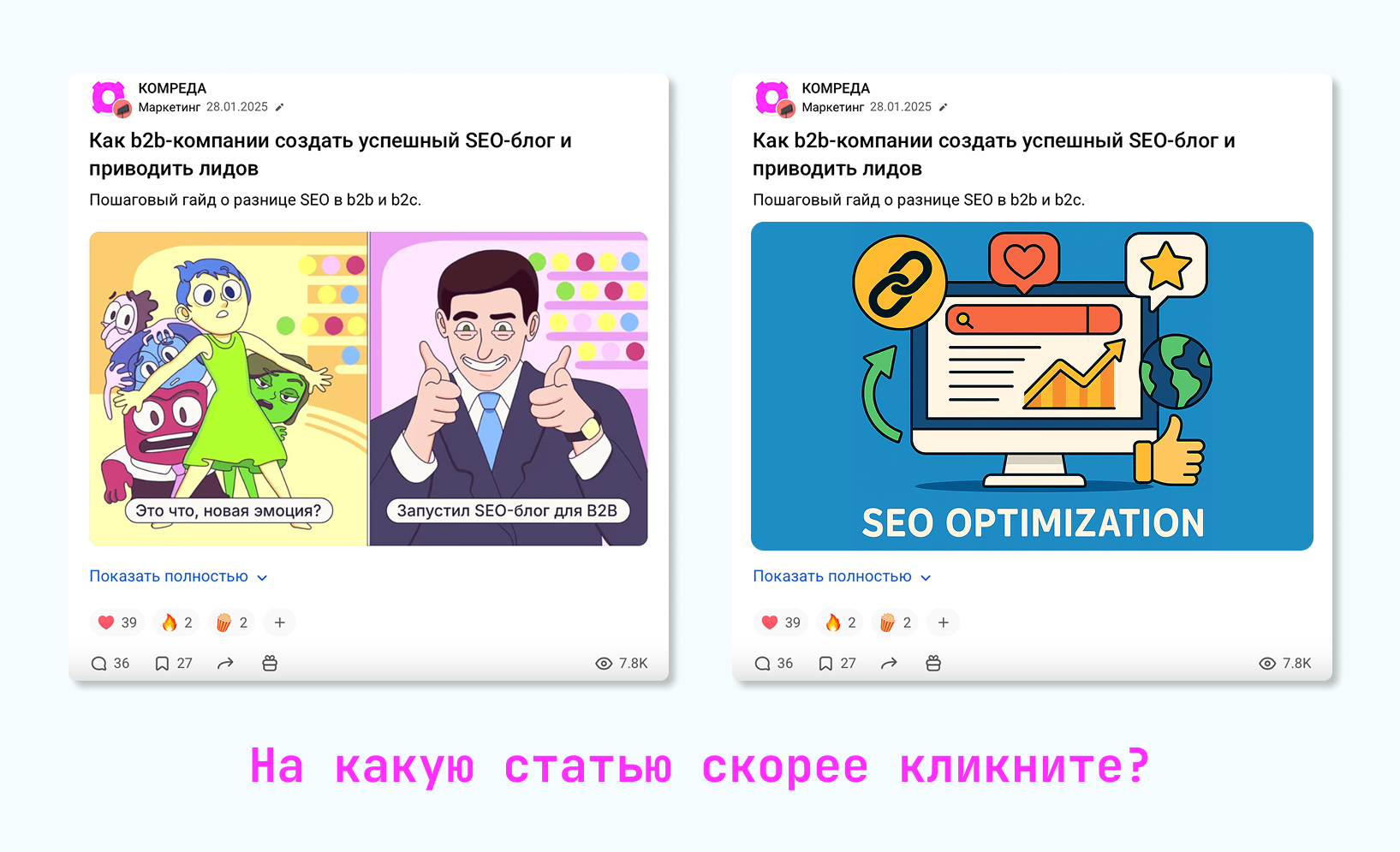 К примеру, визуализацию нередко воспринимают как картинки для красоты. На самом деле это важный элемент, который напрямую влияет на дочитываемость. Картинки с фотостоков или сгенерированные ИИ изображения мало чем отличаются друг от друга и не выделяют материал в ленте. Авторские иллюстрации и продуманная визуальная концепция, напротив, делают публикацию узнаваемой и увеличивают шанс клика и дочитывания. И вот такие нюансы мы учитываем по каждому элементу статьи.