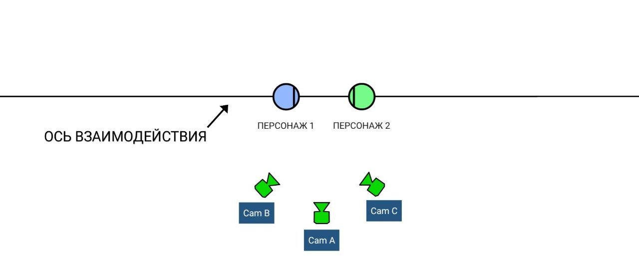 Почему это важно бизнесу: Ось взаимодействия — это качество восприятия. Нарушил ось — значит, зритель не досмотрит до конца. Значит, ROI от ролика падает. Значит, деньги потрачены зря. Профи всегда снимают с осью в голове. А ещё они выставляют камеры по одной линии и учитывают это при монтаже.