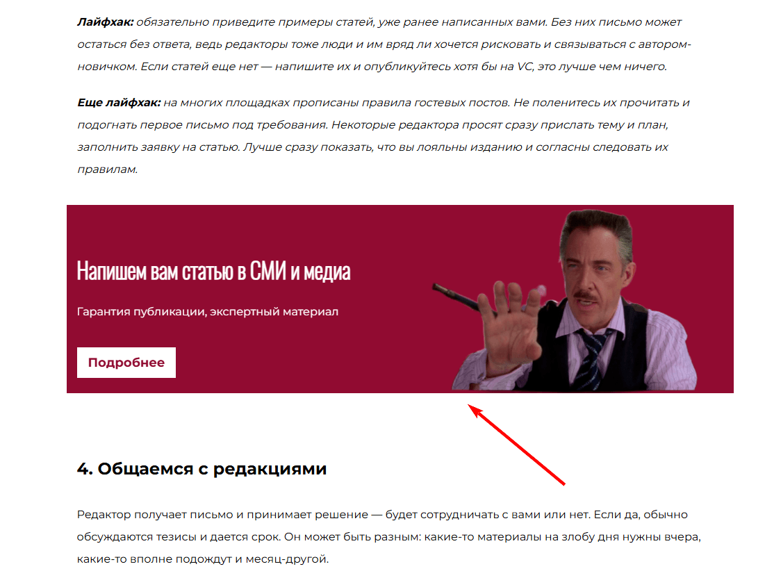 Кнопки СТА, формы заказов, виджеты, лидмагниты — все это прекрасно работает на собственном сайте, где вы барин и хозяин. Но что делать, если вы публикуетесь в СМИ, на Дзене или VC, где свои правила, своя верстка, а редакторы внимательно бдят, чтобы вы не дай Бог не прорекламировали свои услуги?