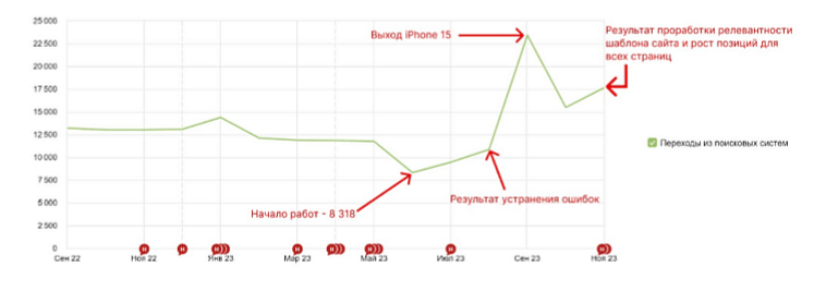 Что сделали: переработка каталога, фильтров, улучшение структуры Результат: +42% органического трафика за 4 месяца, ROI = ×5