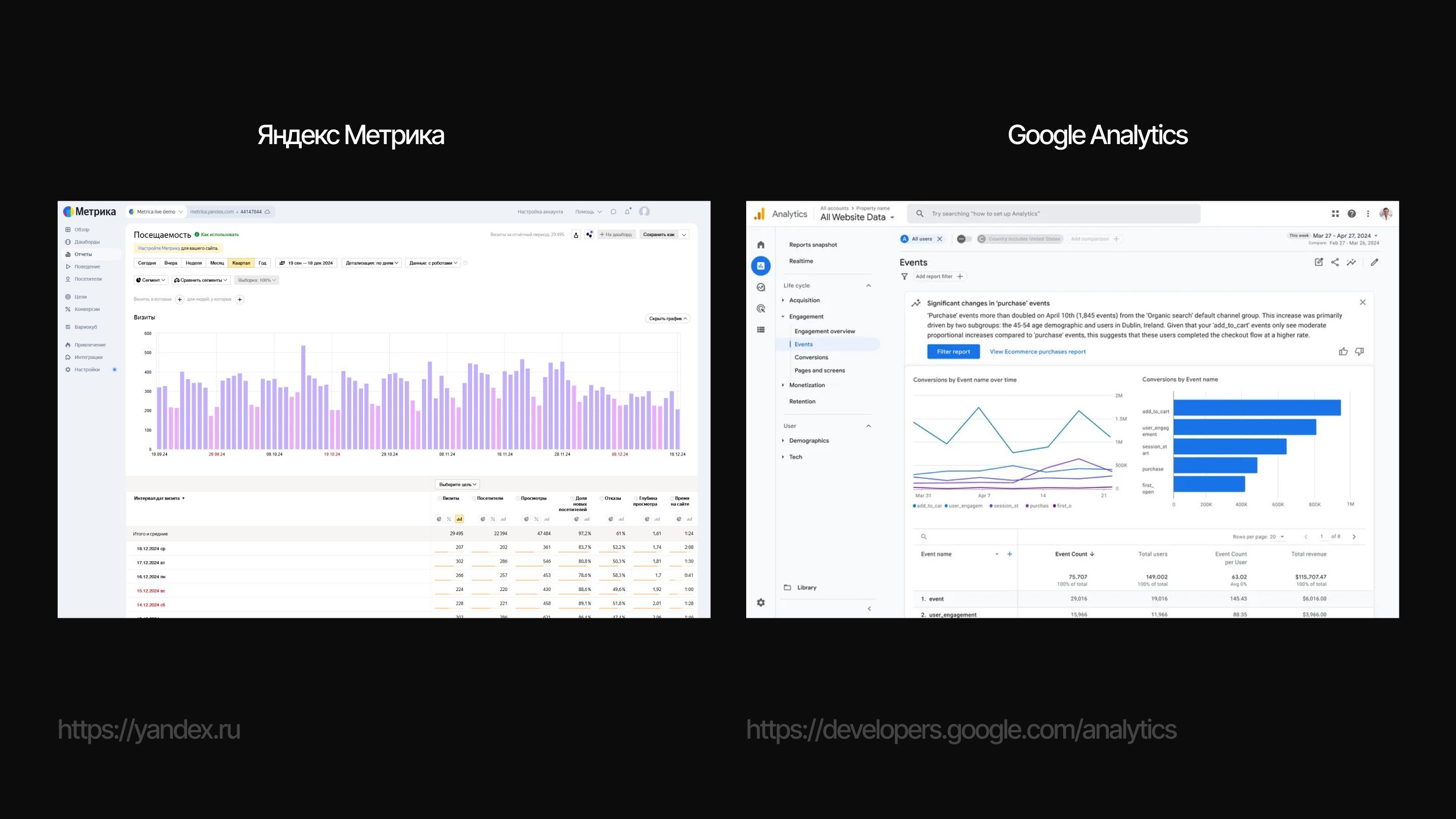 Здесь мы будем рассматривать только показатели Яндекс Метрики, так как используем и подключаем на проекты мы только её. Метрика проще в понимании, при этом такая же информативная, как Google Analytics.