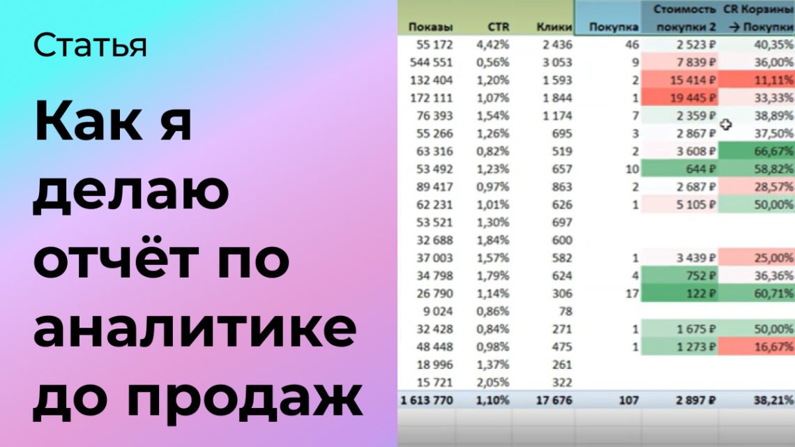 В статье расскажу, как анализировать готовый отчёт по эффективности рекламы до рекламных показателей и продаж.