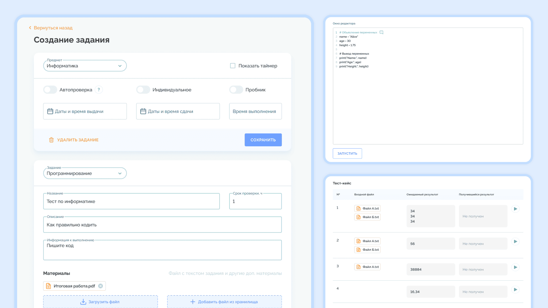 Автоматизированные системы дают быстрый и понятный фидбек. После сдачи работы ученик получает результат, ошибки и рекомендации по улучшению.