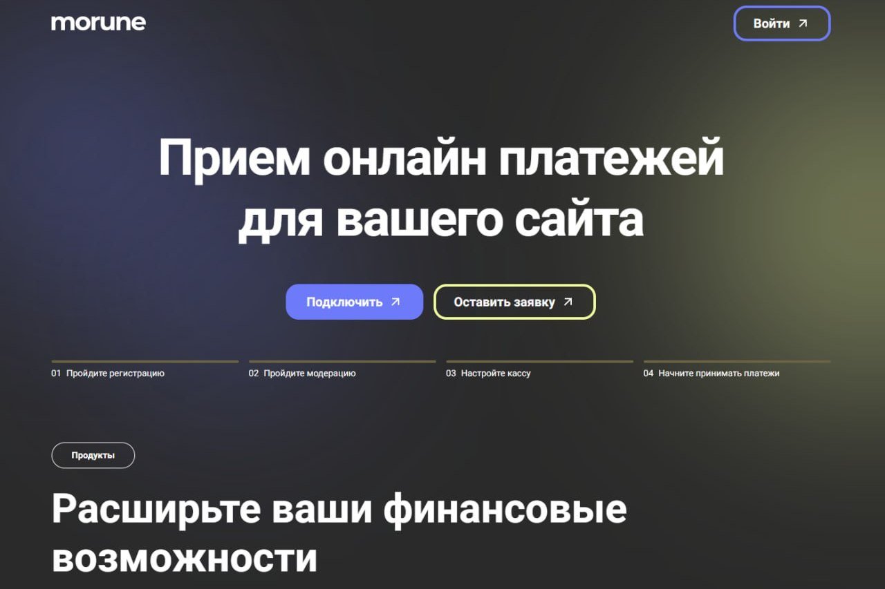 Morune — ваш универсальный инструмент для приема платежей в интернете. Мы поможем вам забыть о проблемах с получением оплаты, ведь мы принимаем платежи всеми возможными способами! Вам больше не придется думать о том, как клиент будет платить — мы сделаем все за вас. С нами вы сможете сосредоточиться на выполнении важных задач, а мы обеспечим вам надежный и удобный способ получения денег.