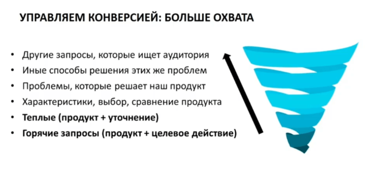 Логично смещать фокус как можно ниже по воронке. Если уж трафик и будет приходить, пусть это будут более конверсионные запросы, а не просто околотематические.
