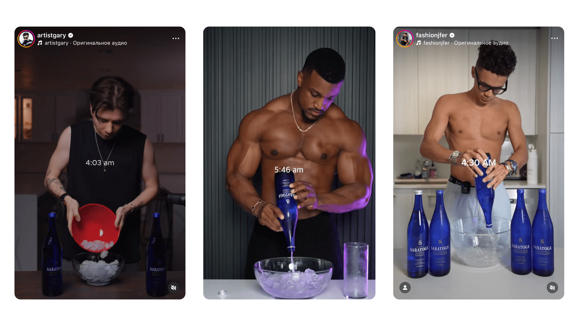 И именно это стало ключевым моментом. Saratoga Water не платила за интеграцию, не просила упоминания, и при этом получила колоссальный охват. Речь не о десятках или даже сотнях тысяч просмотров – суммарные охваты роликов перевалили за миллиард.