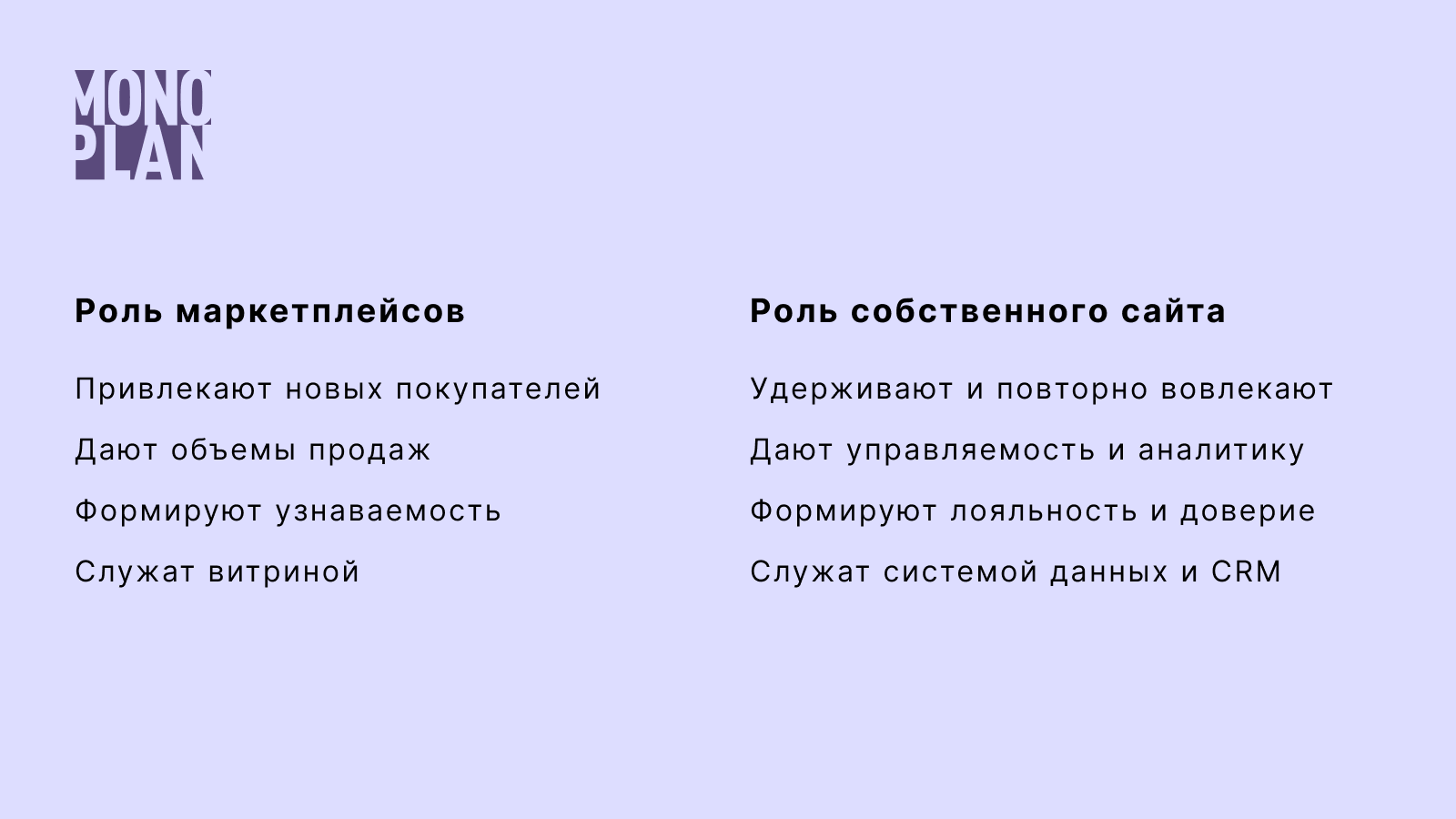 Современная стратегия продаж - это не «или-или», а «и-и». Собственный сайт не конкурирует с маркетплейсами, а работает в паре: