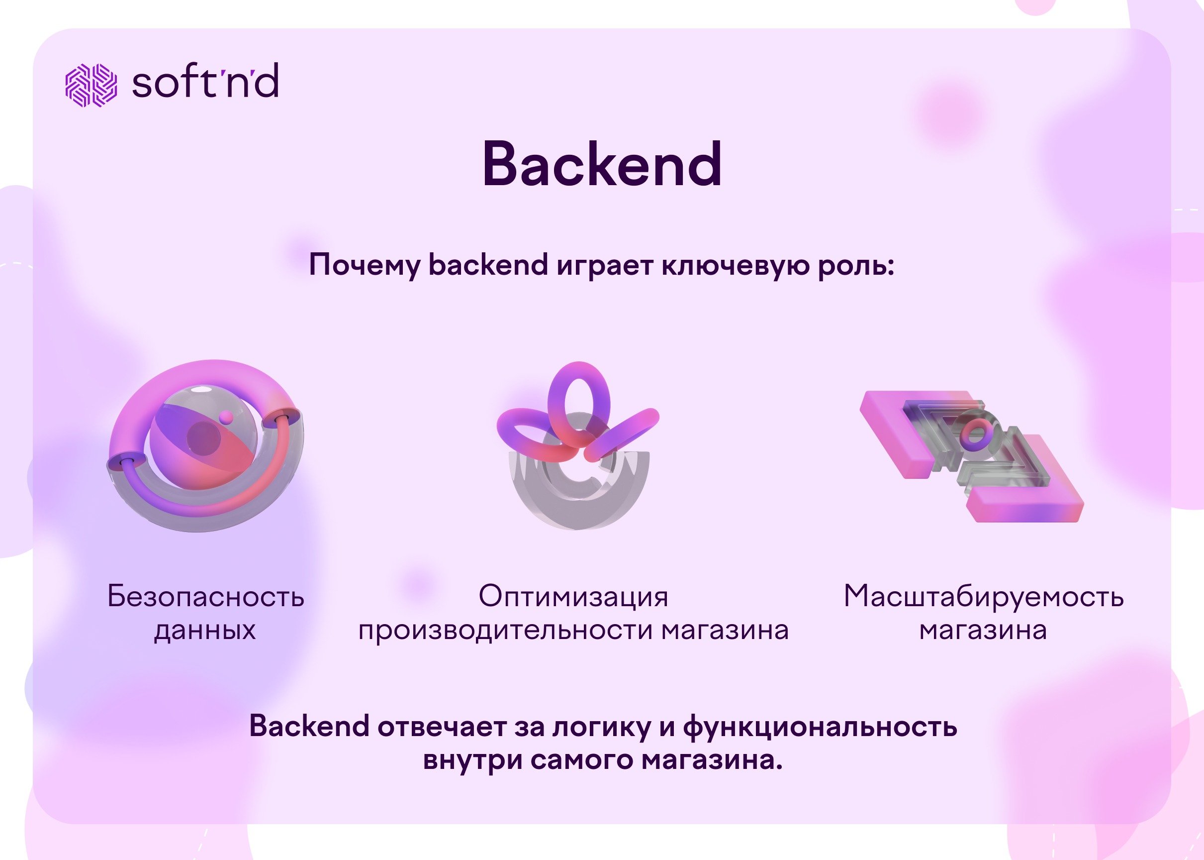 Без backend-разработки даже самый красивый и удобный интерфейс становится бесполезным. Этот аспект отвечает за логику и функциональность внутри самого магазина. Он включает в себя такие важные аспекты, как обработка платежей, управление инвентарем, обработка заказов, а также безопасность и защиту данных пользователей. Иными словами, зачем нам дизайн и адаптивность, если мы не можем ничего оплатить.