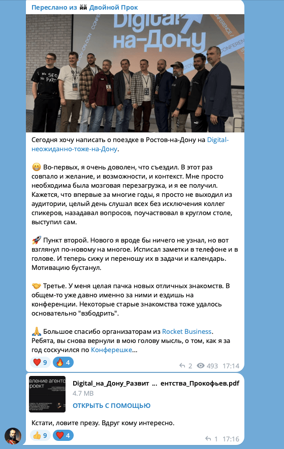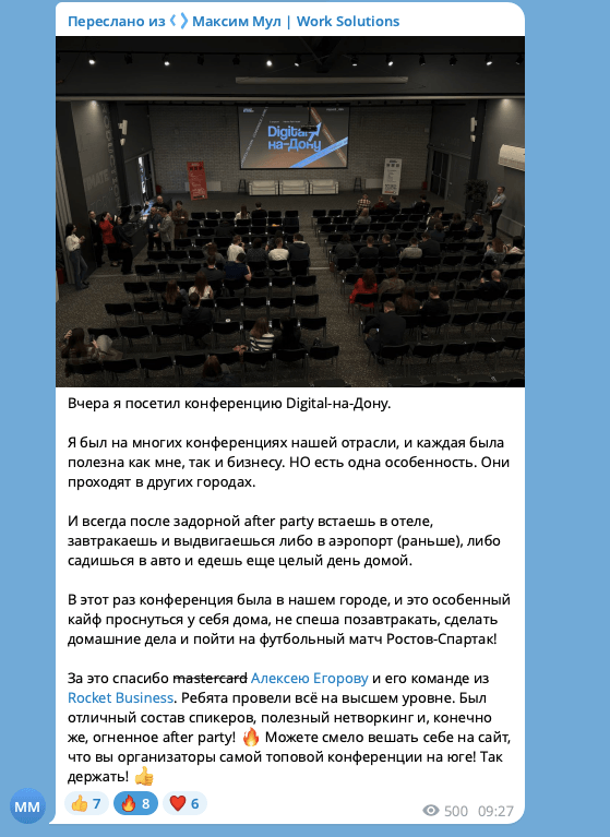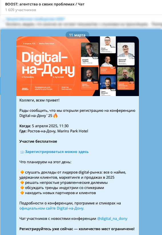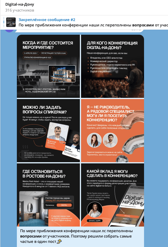 Далее составили список тематических чатов, согласовали анонсы с админами, разослали приглашения в агентства Ростовской области и ближайших регионов.