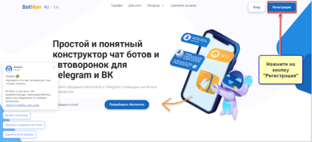 Чтобы ознакомиться с интерфейсом и базовыми возможностями, можно зарегистрироваться на платформе: https://botman.pro/