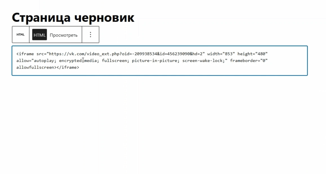 Вы можете обратить внимание, что код разместился, видео появилось и его можно запускать и просматривать прямо в теле страницы. А значит, инструкция работает.