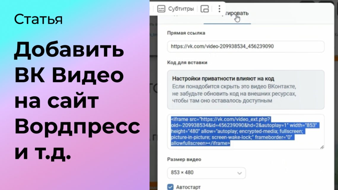 Привет, друзья! Сегодня хочу вам показать, как можно разместить ваше ВК видео на странице любого сайта, будь это Tilda, WordPress или ещё какая-то платфорома.