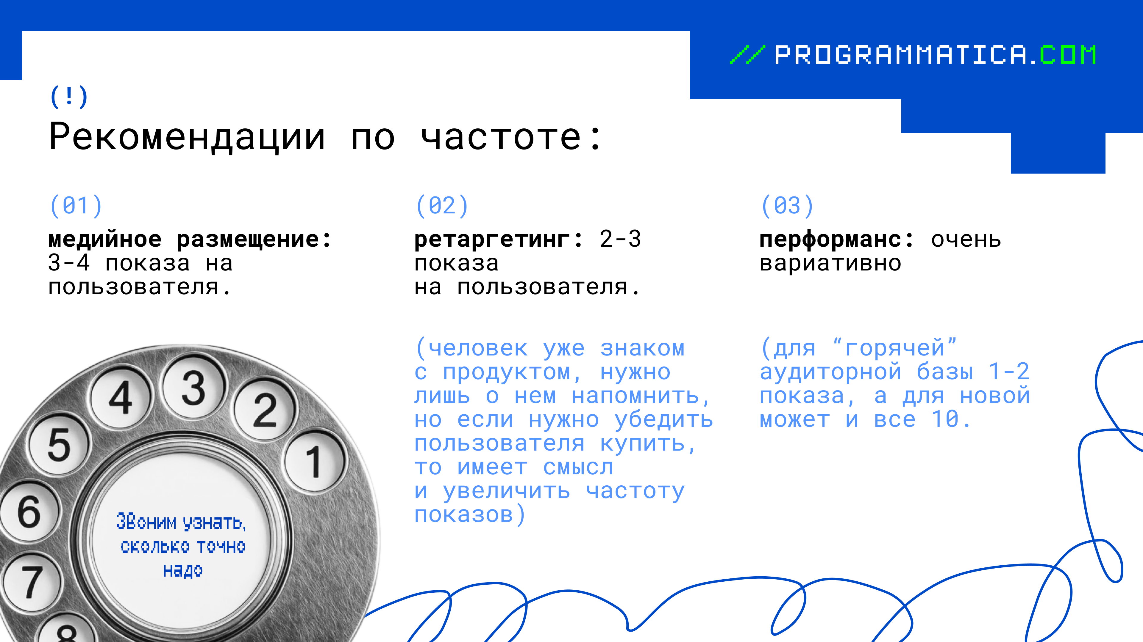 Ограничение частоты показов — одна из самых распространенных настроек, поскольку оптимальное число контактов пользователя с рекламным креативом зависит от целей конкретной кампании.