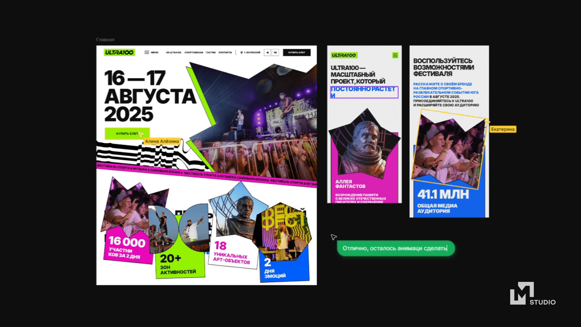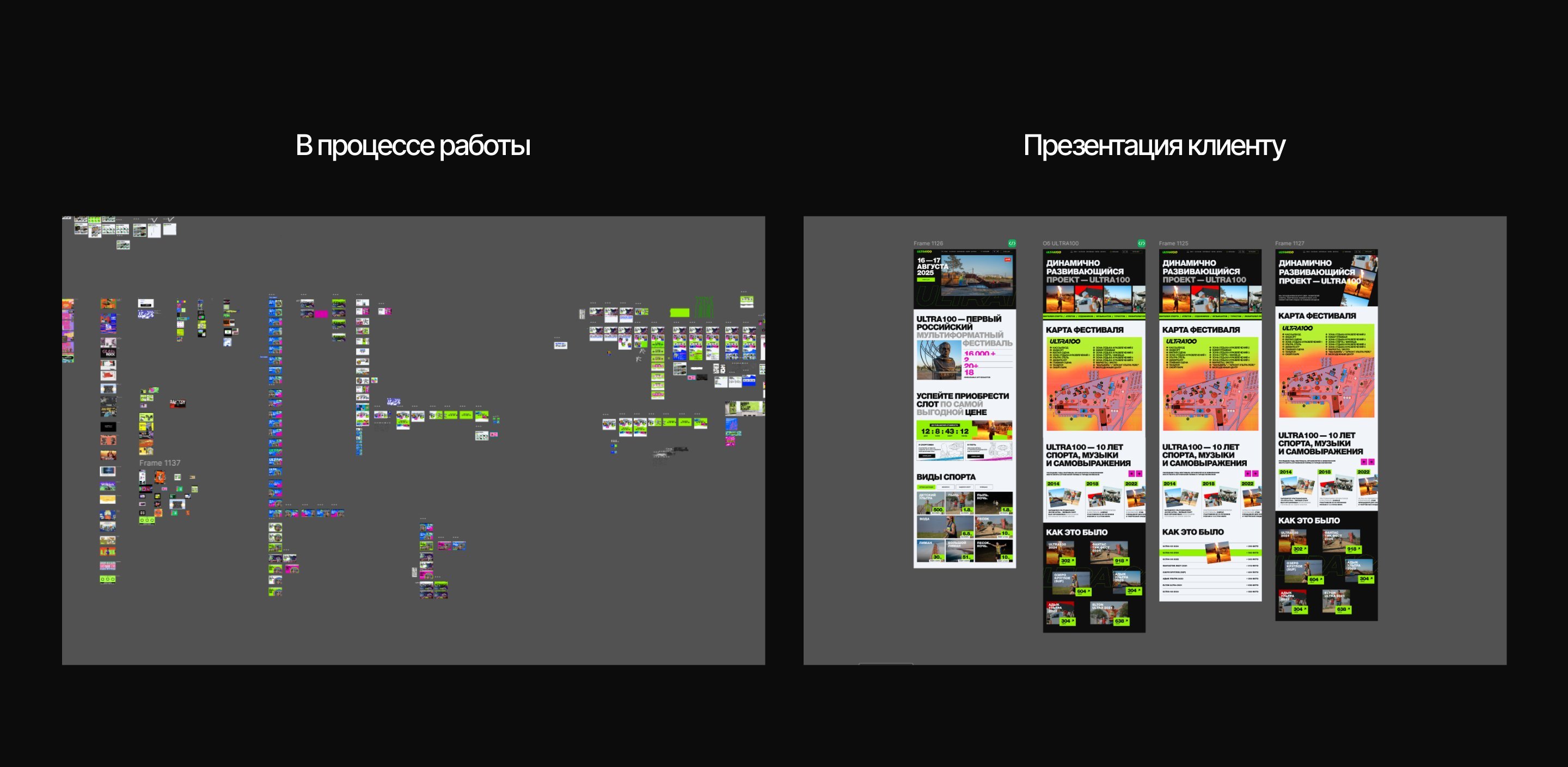 В 99% случаев этот этап проходит быстро. Но иногда заказчики понимают, что изначальная задача не решает цели сайта, и вносят корректировки в стилистику дизайна. Так, например, было с проектом ULTRA100 — о проекте можно почитать в Workspace (история захватывающая, вы не пожалеете).