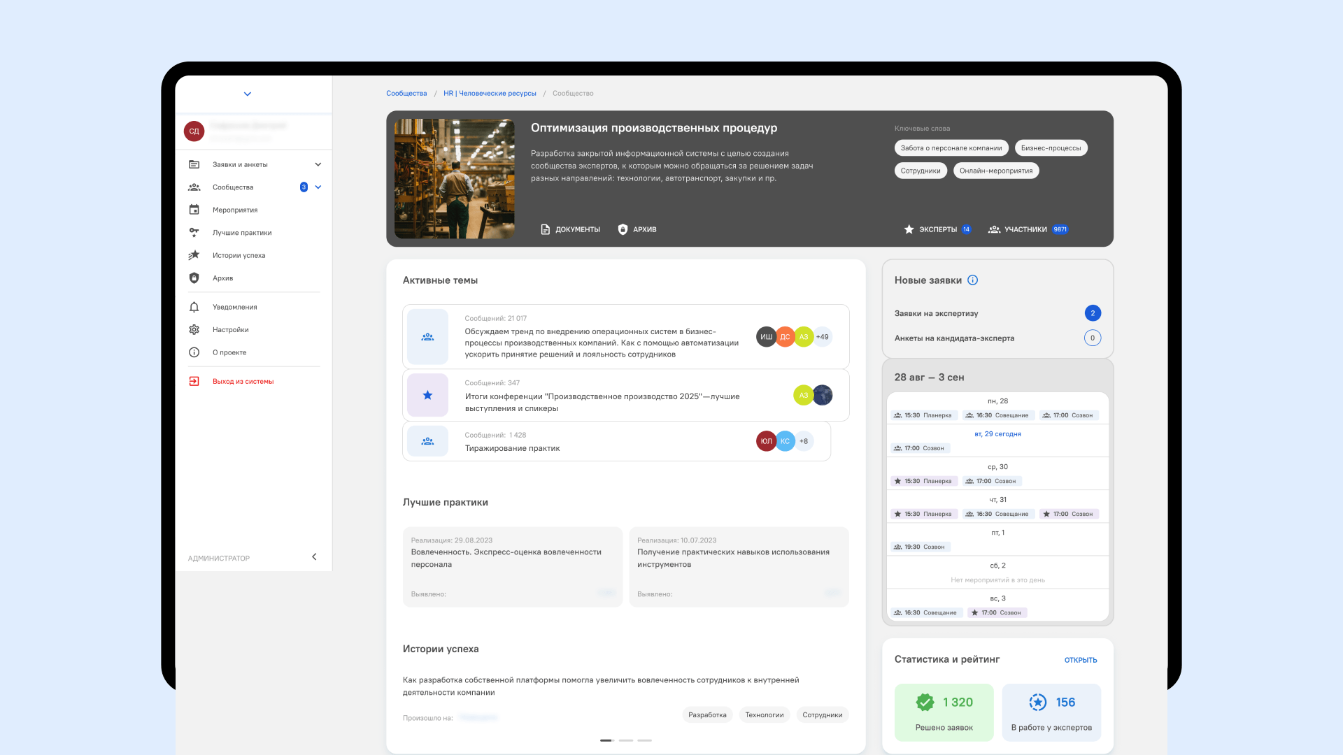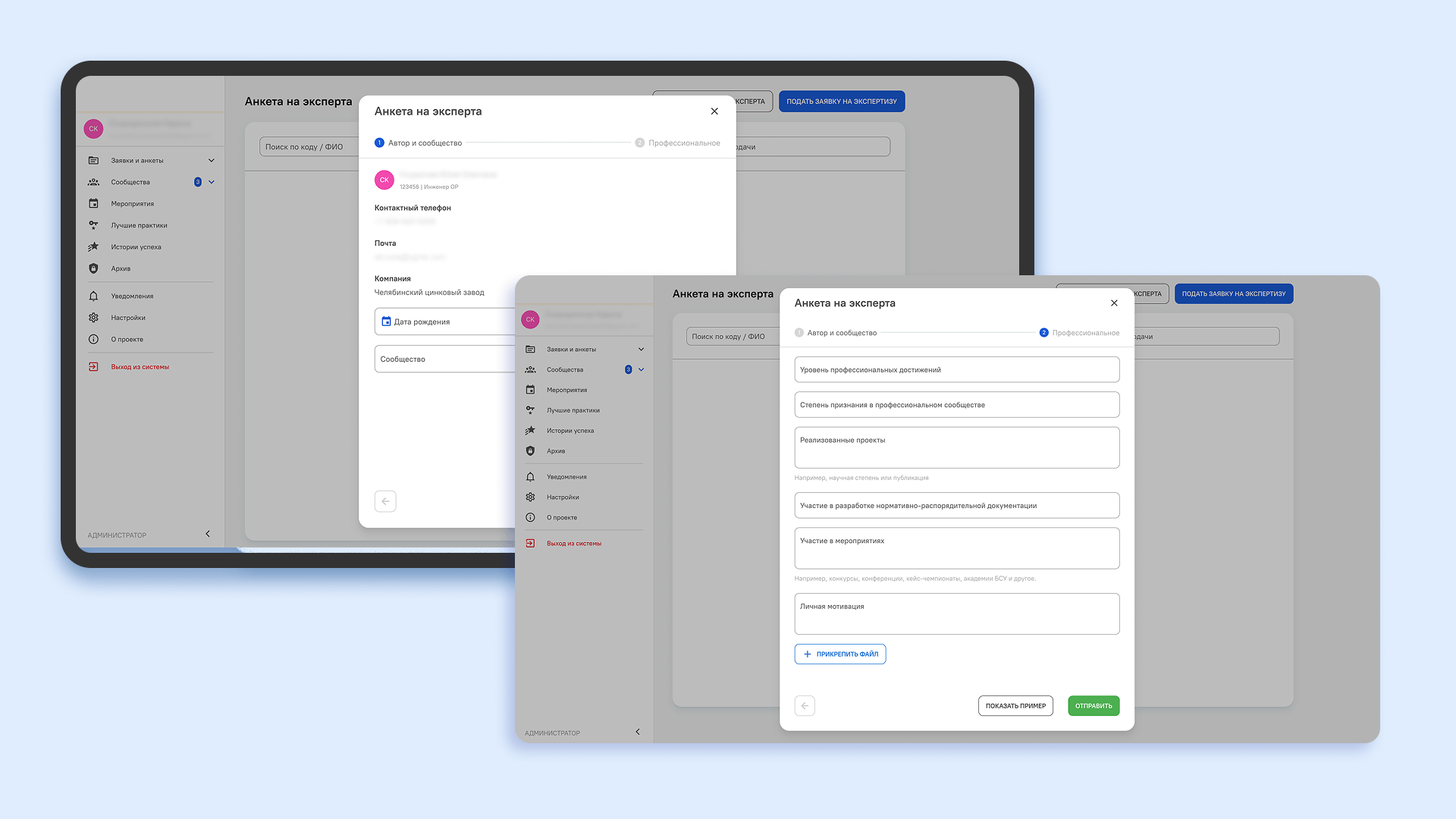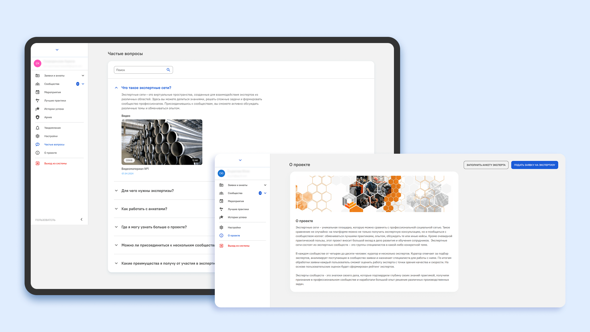 Для экспертной сети промышленного холдинга мы реализовали отдельные роли: пользователь, эксперт, куратор и модератор. Это позволяет распределить ответственность и упростить навигацию в системе.