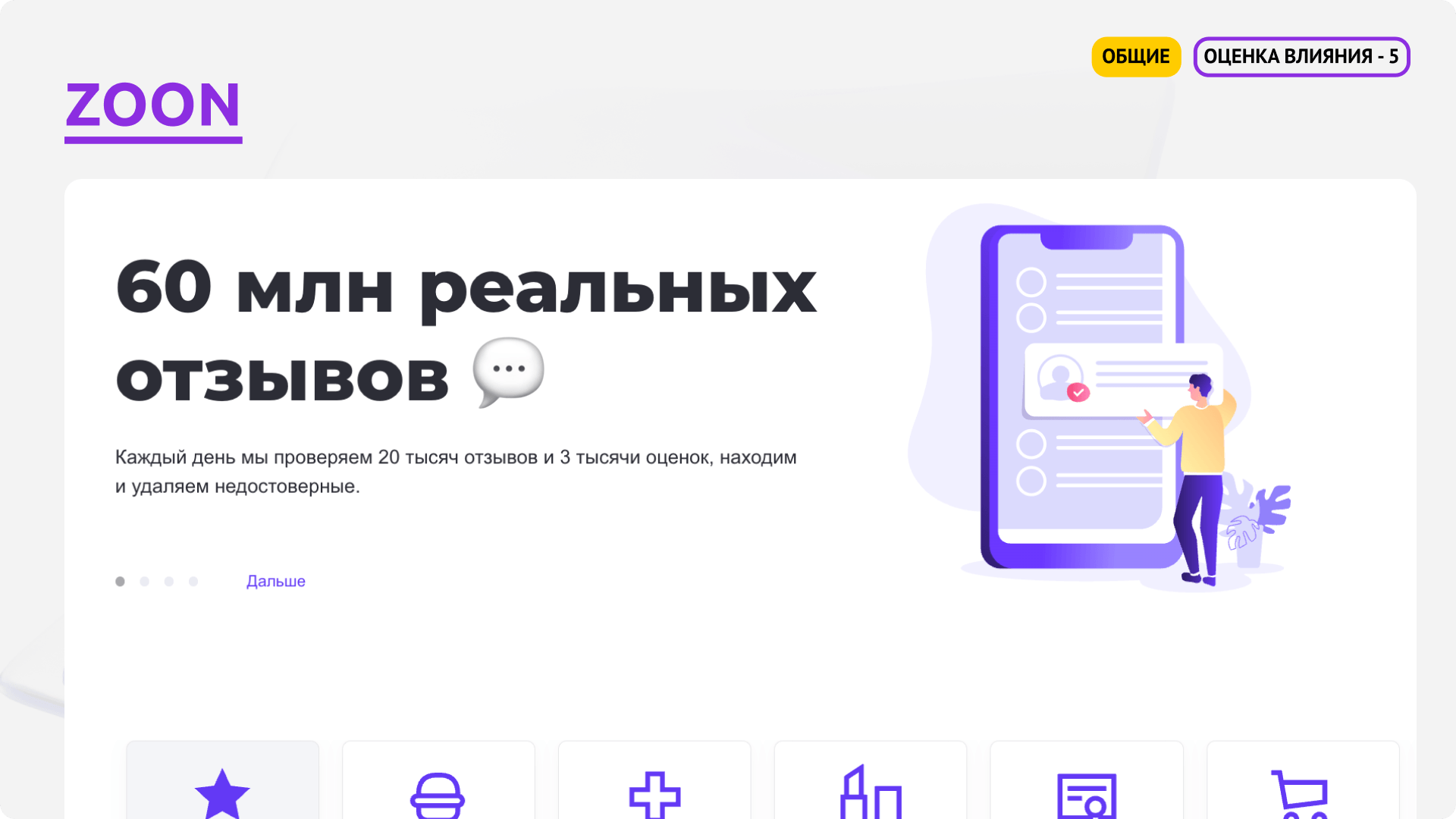 Zoon — федеральный каталог-агрегатор локальных услуг (в том числе медицины) с высокой органической видимостью и готовым спросом. Сайт получает 17 млн визитов в месяц, средняя длительность сессии — 7+ мин., что делает площадку заметным источником лидов для клиник.