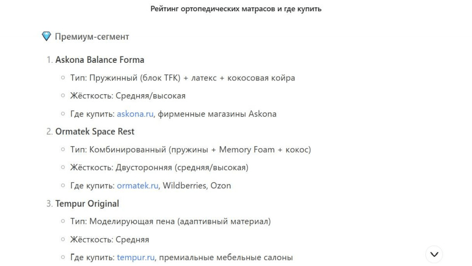 И, наконец, поменялась модель поиска. Все больше пользователей ищут информацию внутри LLM-моделей: GigaChat, DeepSeek, Perplexity, ChatGPT и прочих. На пользовательский запрос нейросети дают релевантный ответ, а также предлагают подборку ссылок на искомые товары или услуги, по которым пользователь переходит. Алгоритмы формирования выдачи нейросетей пока не до конца изучены. Однако исследования профильных агентств уже позволяют сделать выводы о ряде факторов ранжирования. На их основе можно дать несколько рекомендаций, которые помогут брендам адаптировать контент-стратегию под нейропоиск.