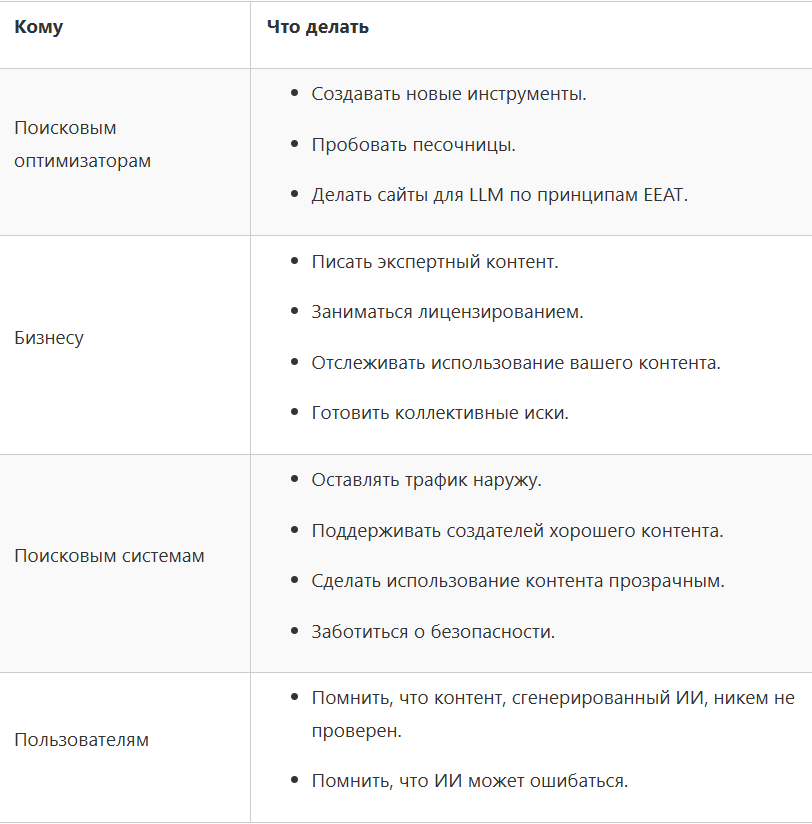 Компаниям и производителям придется еще больше контролировать, что про них пишут в интернете. Например, Perplexity около 8% информации берет из Реддита. Нужно будет смотреть, что о компании пишут на форумах, и стараться бороться с негативом, потому что это сильно влияет на качество работы и возможность попасть в выдачу.