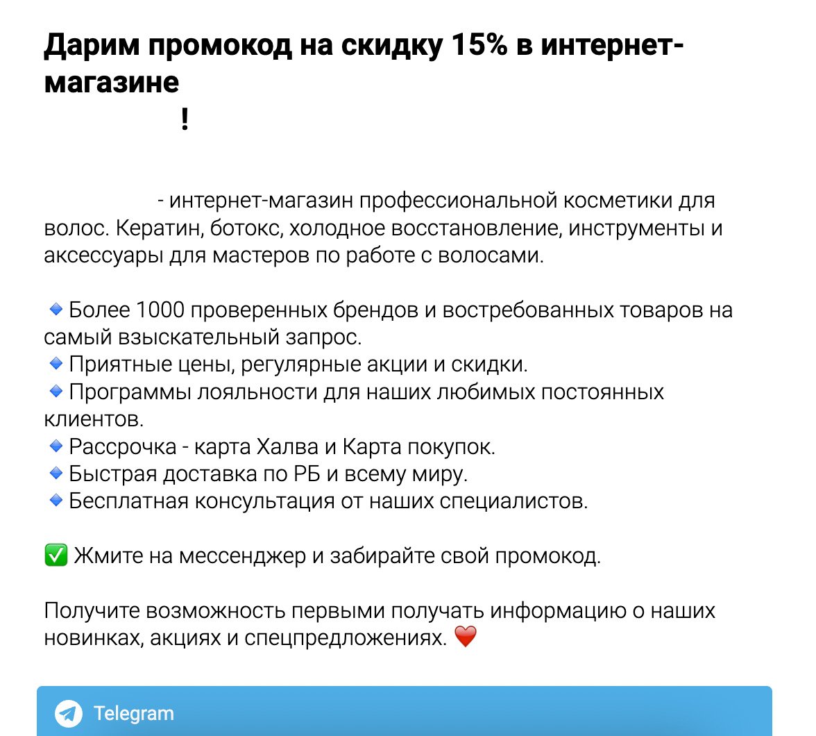 В таком варианте мы предлагаем пользователю подписаться, чтобы получить доступ к подаркам от магазина или специальному промокоду.