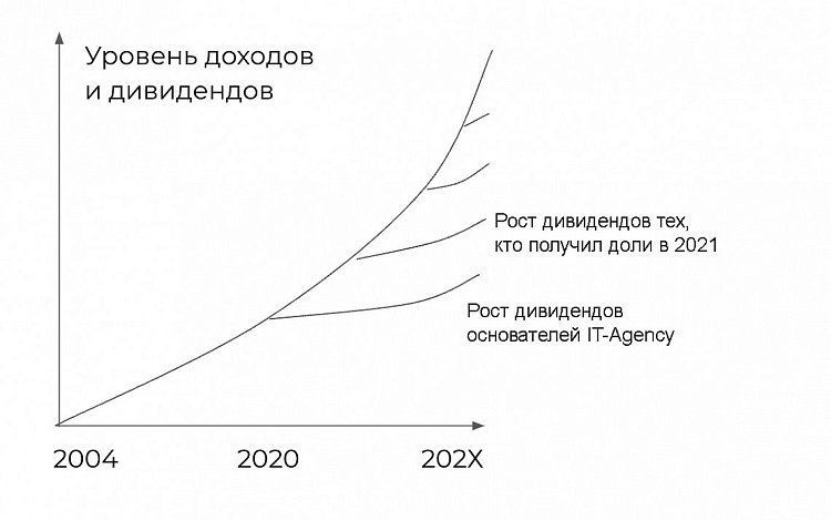 Если сотрудник получил долю, но перестал работать в агентстве, он будет получать только небольшую часть дивидендов от новых достижений компании