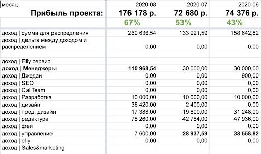 Отчётность живёт в Гугл-таблице, которая открыта для всех сотрудников, даже внештатных. Любой может зайти в файл и посмотреть, как дела у его команды или у всего агентства. Так мы реализуем наши ценности «честность» и «неудобная прозрачность».