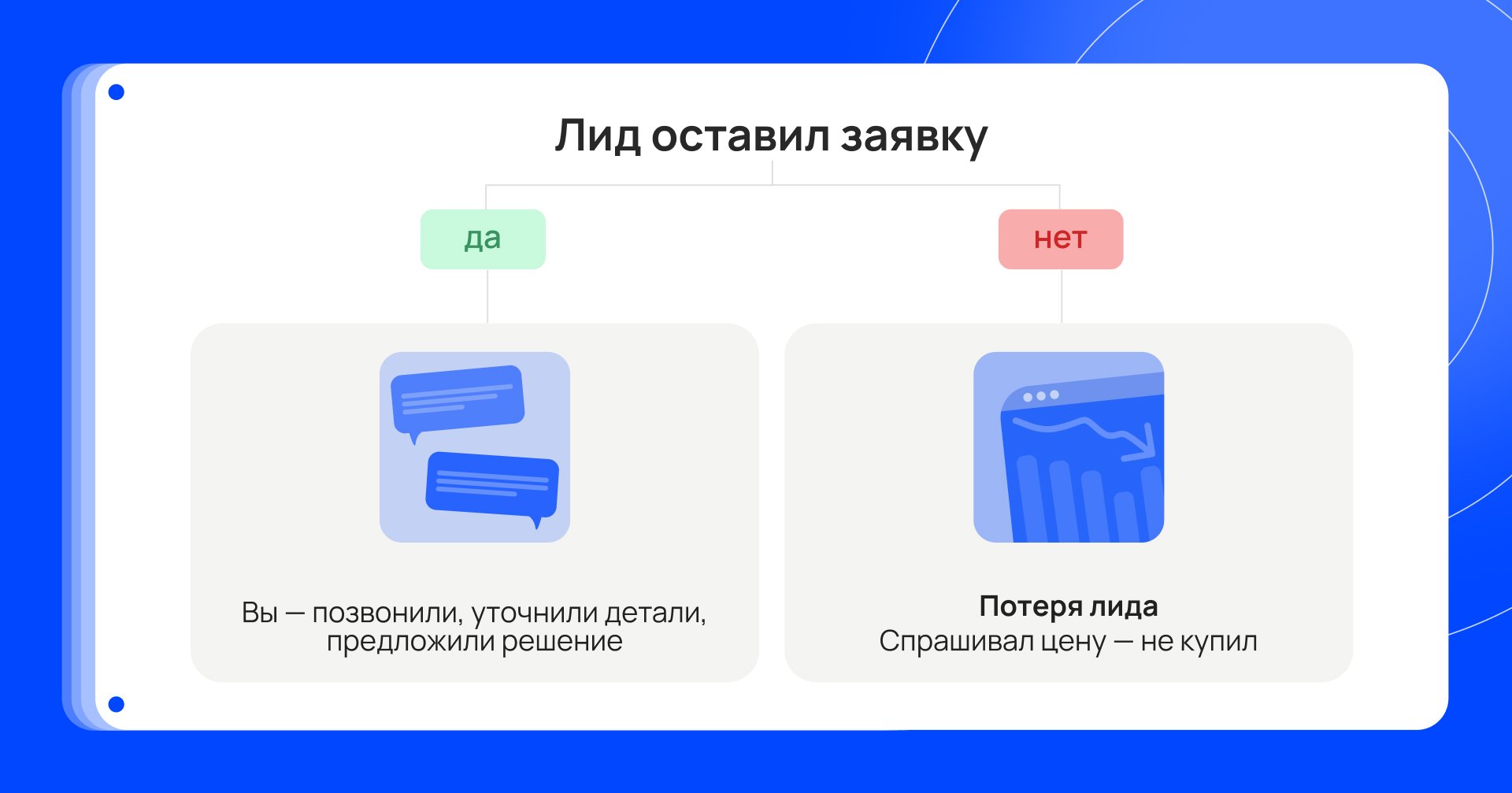 3. Отсутствие регламента обработки лидов. Когда нет чёткого алгоритма действий и менеджер каждый раз действует по-новому и так, как ему хочется.