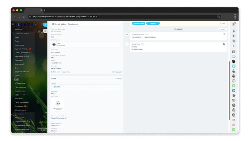 Для компаний, которые работают в экосистеме Битрикс24 и используют hh.ru для поиска кандидатов, настройка интеграции – важный шаг к автоматизации. Полный цикл найма и адаптации сотрудника.