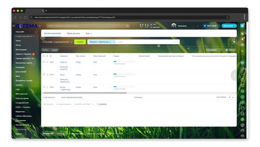 При этом Битрикс24 автоматически пополняется новыми контактами кандидатов и формируется база для HR на будущее.