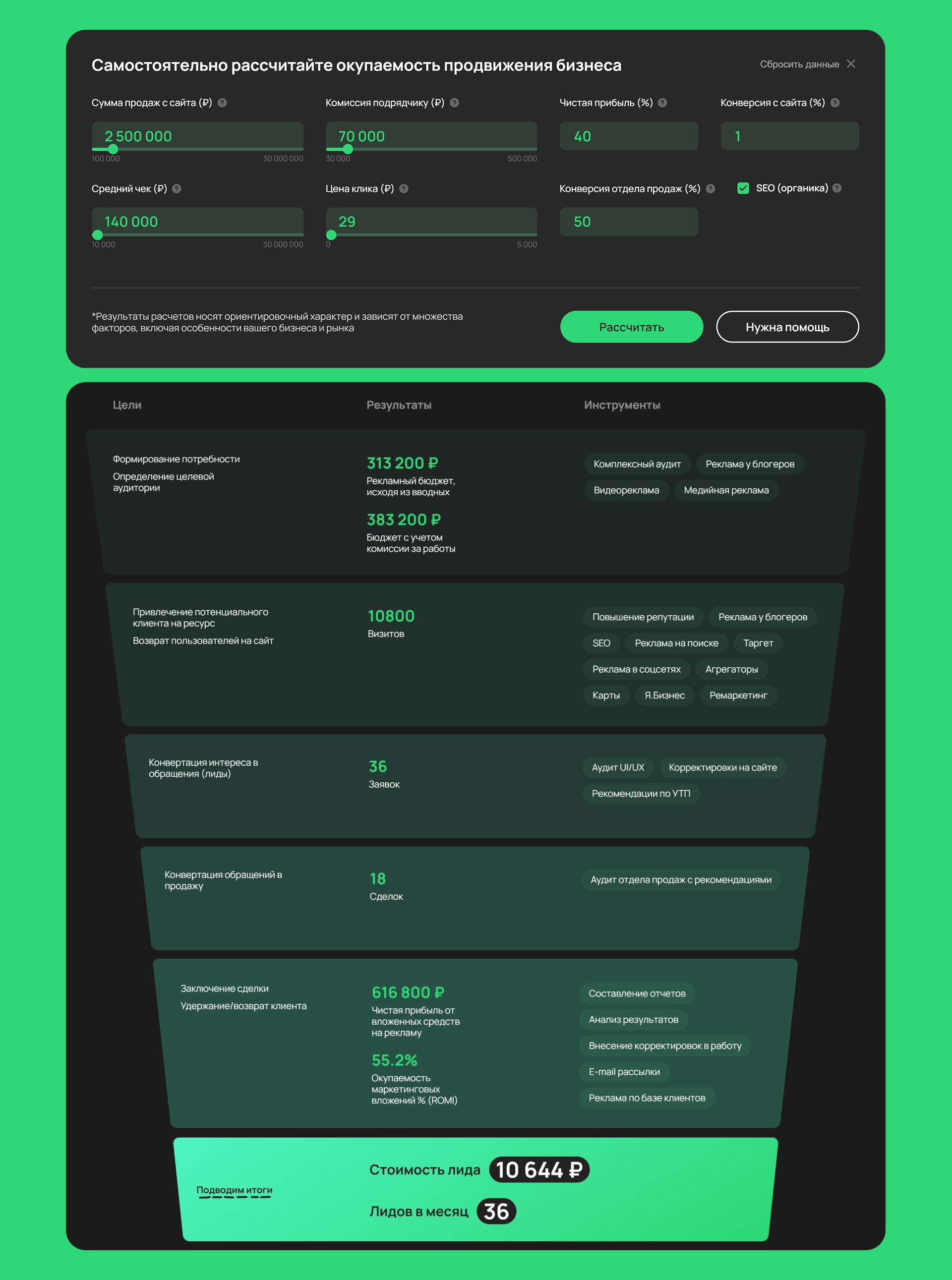 Бесплатный калькулятор окупаемости продвижения бизнеса