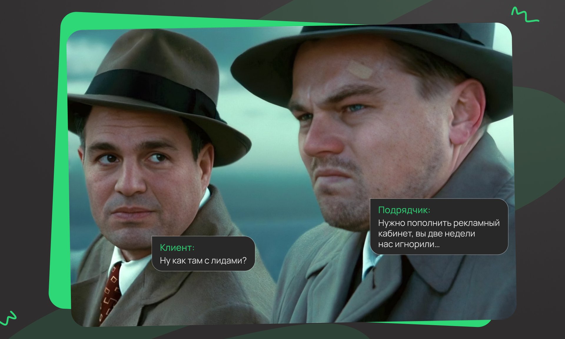 Что можно сделать в этой ситуации? Подрядчик может дальше приводить лиды, а продажники на стороне клиента продолжат нещадно сливать коммуникацию, но зато номинально все свои функции выполняют. План не делается, недовольный заказчик уходит, хлопнув дверью. Теперь он будет относиться к маркетингу скептически, ведь “ему уже что-то настраивали, только деньги потерял, результата нет”.