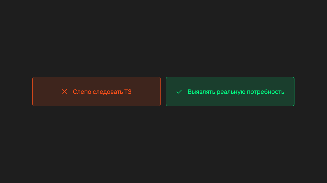 Важно всегда разбираться, к какой цели клиент хочет прийти при помощи продукта, который начнём разрабатывать.