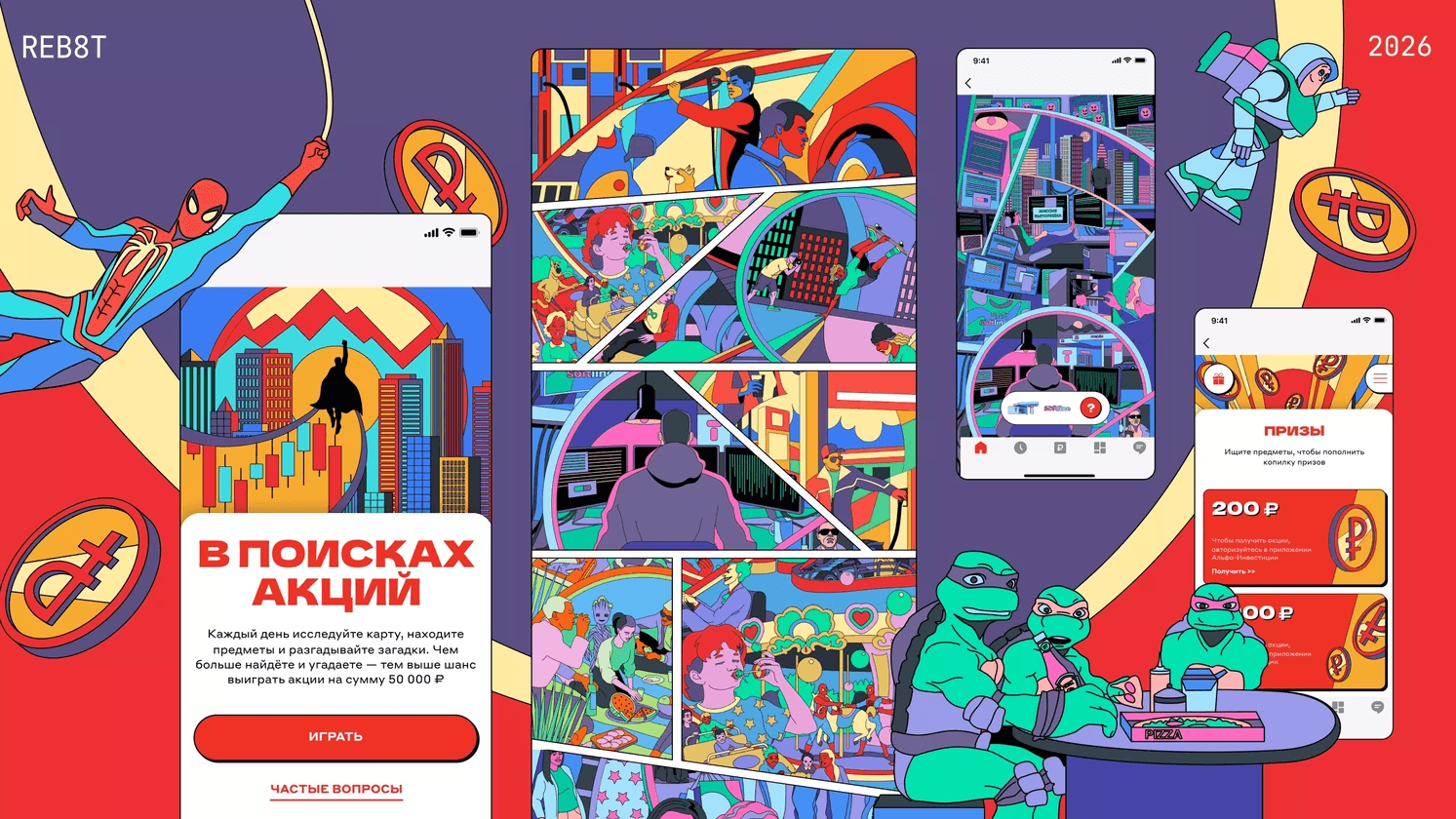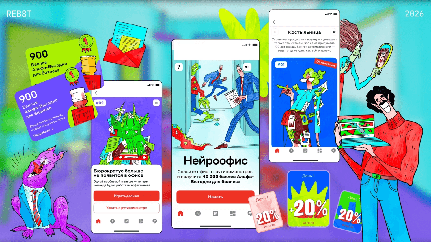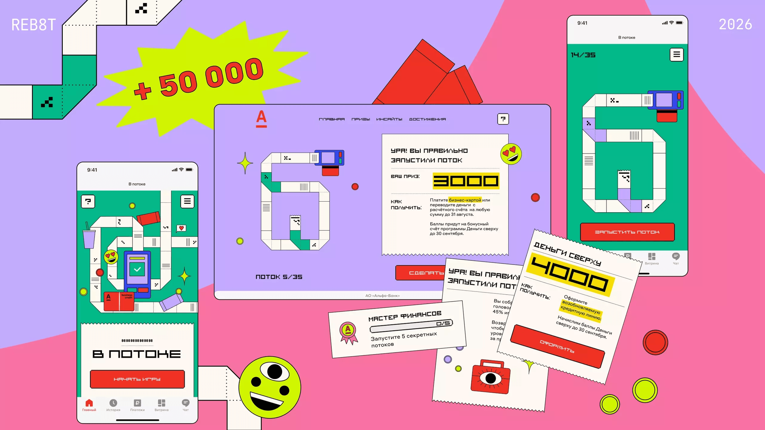 Альфа-Банк пришёл к нам с уже готовой идеей, механикой и наработками по дизайну, но им хотелось улучшить дизайн-концепцию. Мы с командой пересмотрели визуальную метафору и предложили несколько новых вариантов.